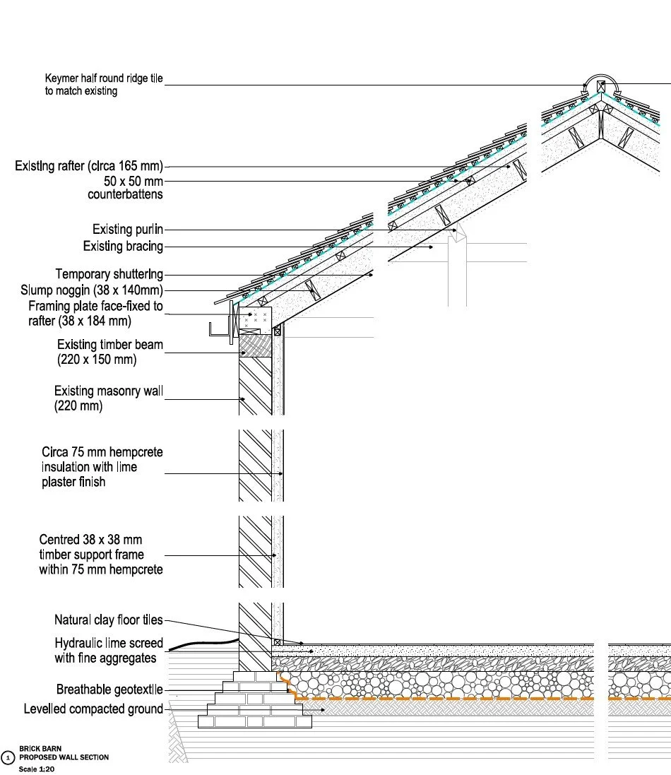 Sustainability formed a key part of the brief. In collaboration with the client, contractor and conservation officer, we developed detailing for the use of mass hemp insulation — a breathable, low-carbon material appropriate to the performance and conservation requirements of historic fabric. This strategy was successfully agreed, enabling the discharge of all pre-commencement conditions.